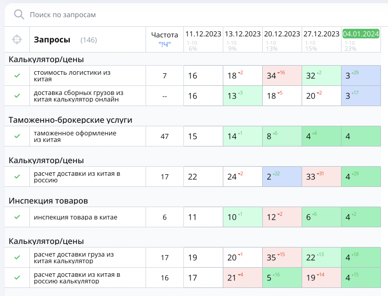 Позиции по проектам мы снимаем в Topvisor каждую неделю, иногда чаще. У вас будет ссылка, чтобы в любой момент лично проверить статистику.